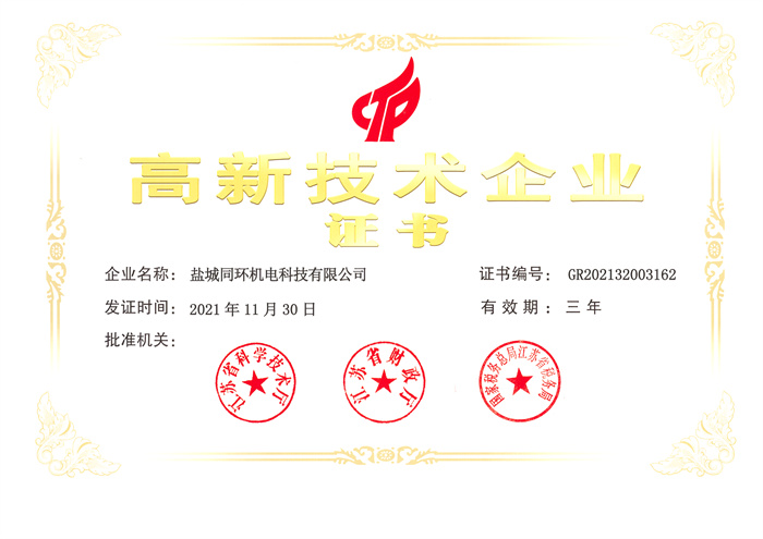 高新技术企业证书-盐城同环机电科技有限公司2021.11.30